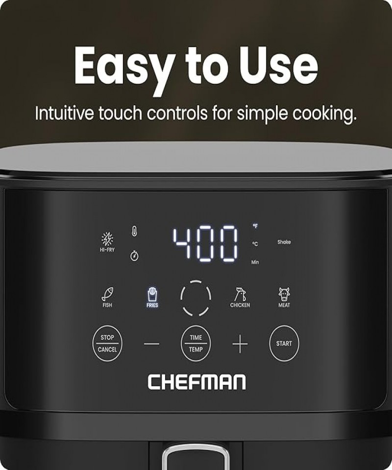 Freidora de aire Chefman: 6 cuartos (aprox. 1,8 litros) Freidora de aire compacta para comidas rápid 1100.0 |